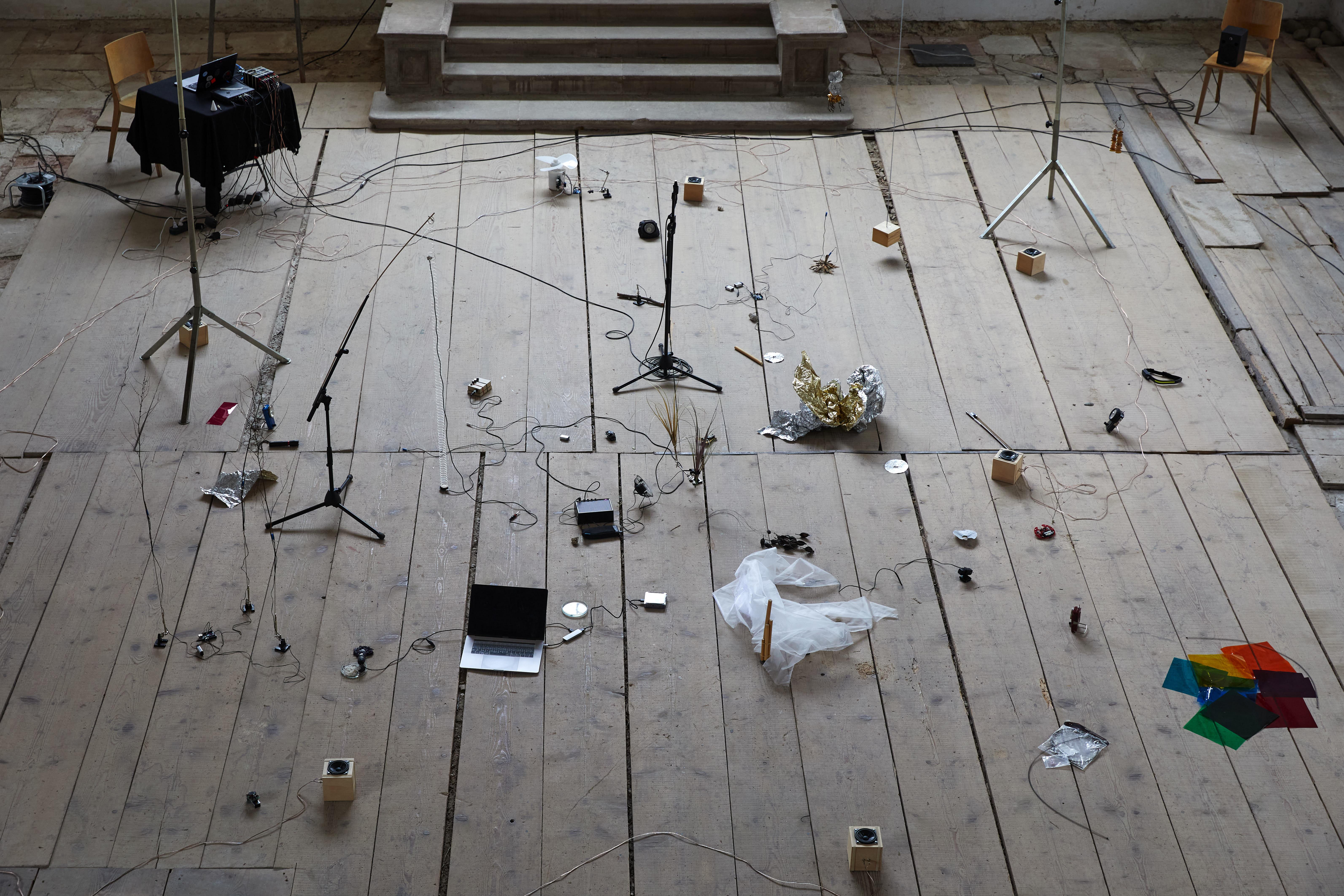 Halfway between ephemeral sound installation and musical performance, Murmure unfolds in space as a mesh of intra-connected entities in constant transformation. The composition plays with the minute and the fragile aspects of listening, questioning our ability to connect with the strange and the imperceptible amidst the tumult of contemporary structures.