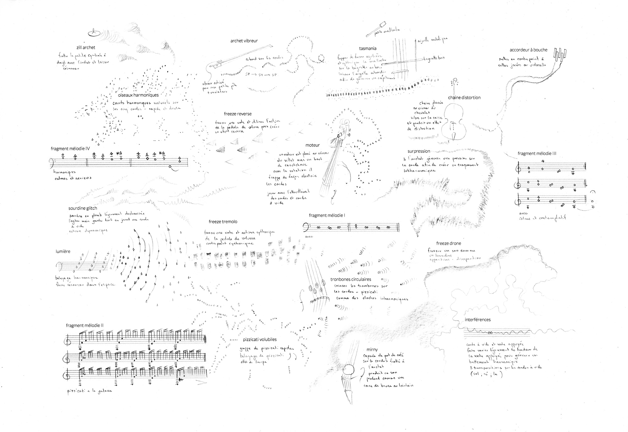 Rhizome is the concert version of Stéphane Clor's solo. It is built on a variety of possible compositions developed through improvisation. The solo thus takes on a new form with each performance, influenced by the venues and contexts. The prepared piccolo cello is at the center of the performance and is altered by electronic elements (motors, transducers, pedals, amplifiers, etc.). The musician plays close to the audience to enhance the intimacy of listening. Rhizome has been performed in numerous cities across Europe.